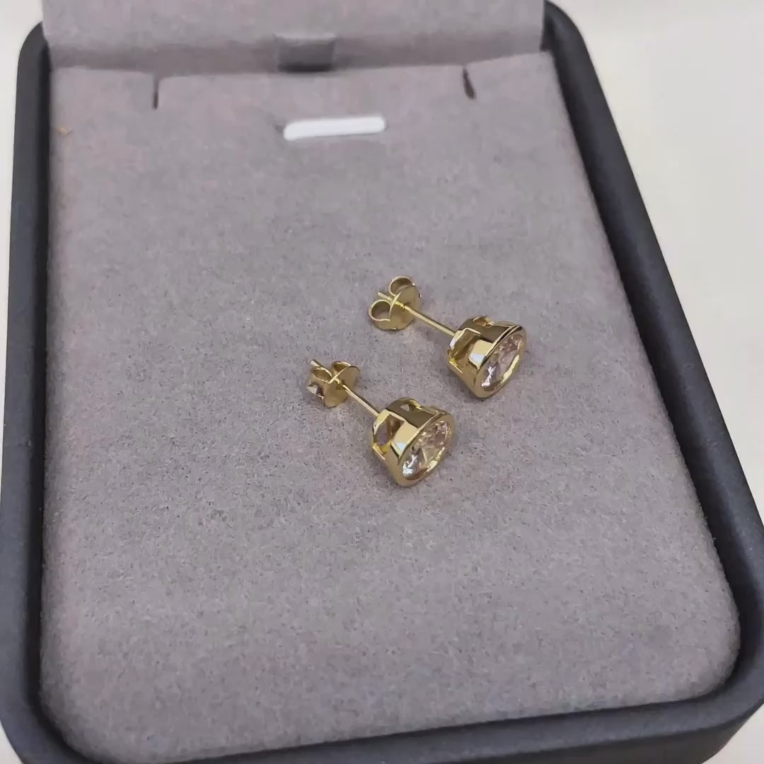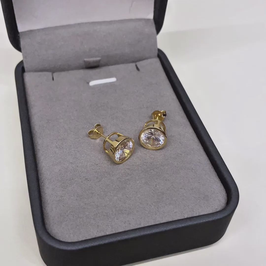 Brincos Round Bezel 8mm Banhado a Ouro 18k