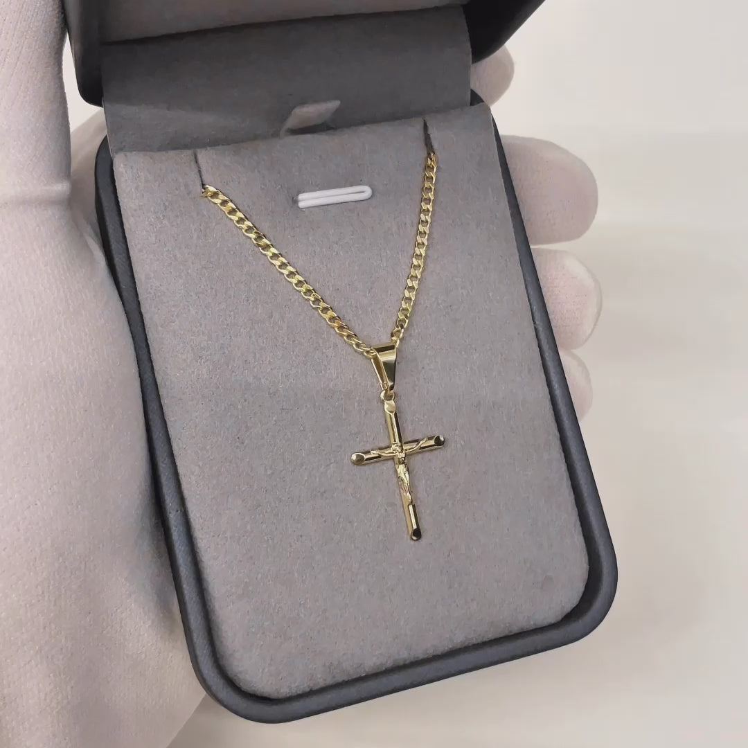 Corrente Grumet 2,5mm com Pingente Cruz com Cristo Banhado a Ouro 18k