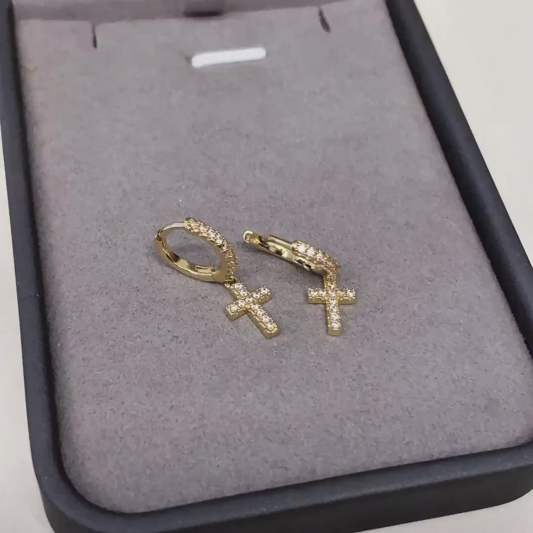 Brincos Argola cruz cravejada banhado a Ouro 18k