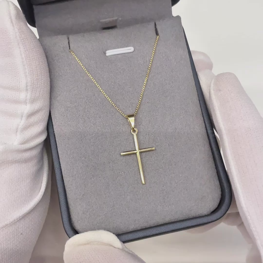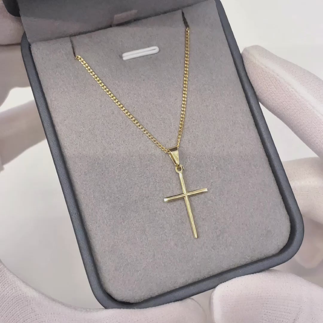 Conjunto Minimalista - Veneziana 1mm com pingente Cruz Lisa Banhado a Ouro 18k