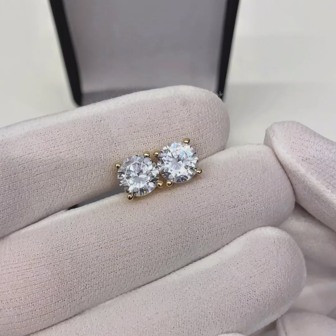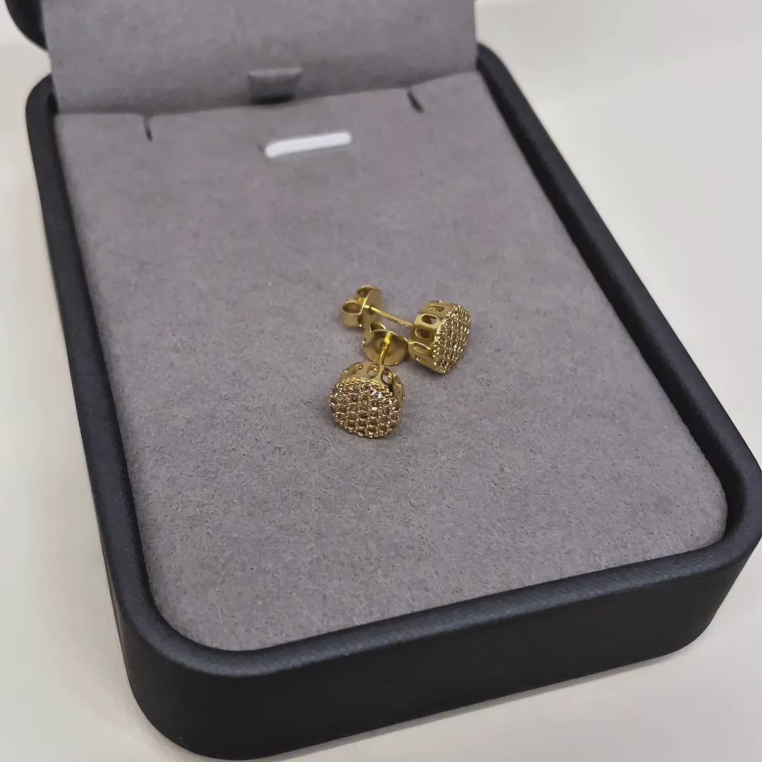 Brincos Round cravejado 8mm Banhado a Ouro 18k