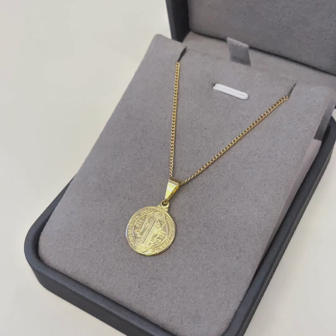 CONJUNTO CORRENTE VENEZIANA 1MM COM PINGENTE SÃO BENTO MINI Banhado a Ouro 18k