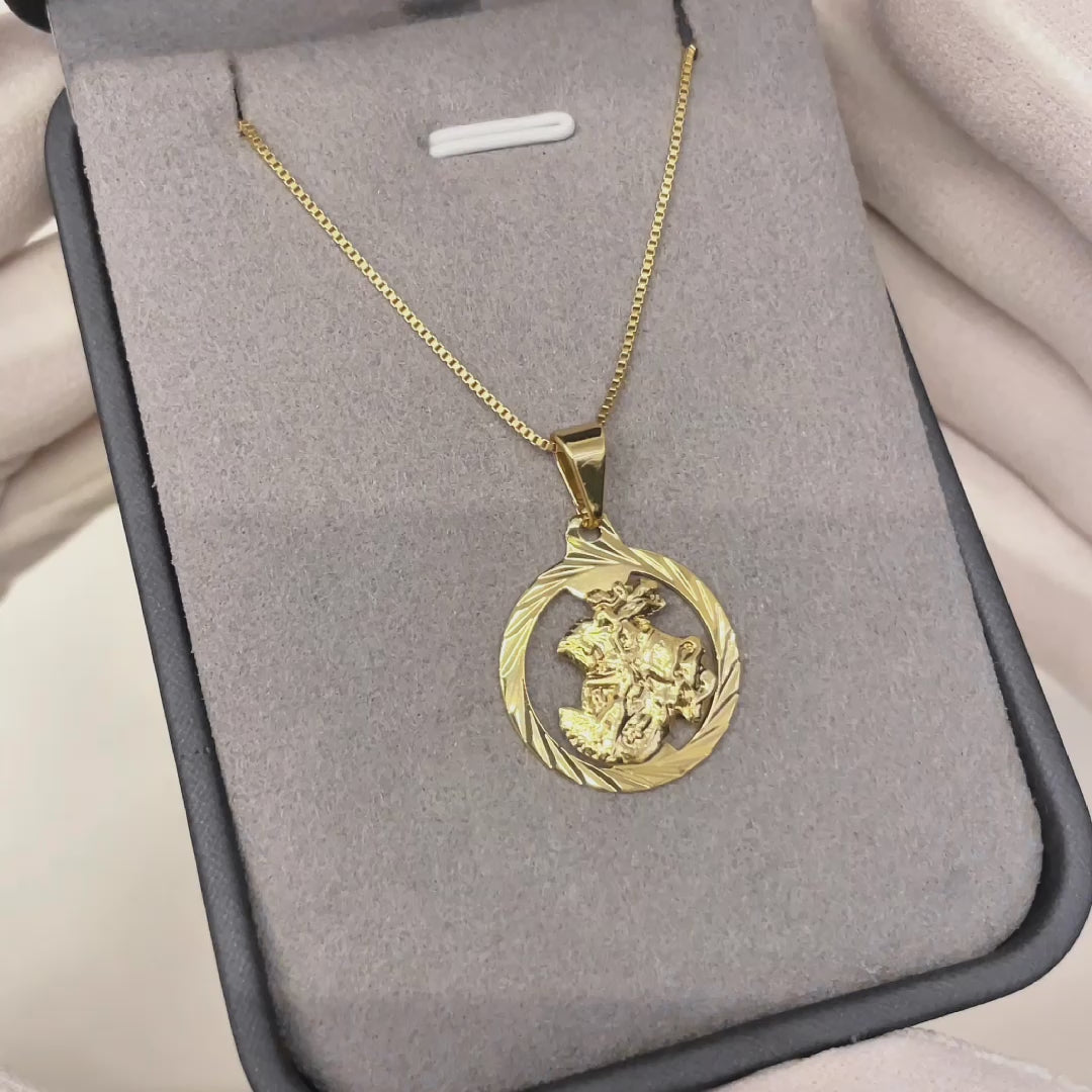 Conjunto São Jorge - veneziana 1mm com pingente São Jorge detalhado Banhado a Ouro 18k
