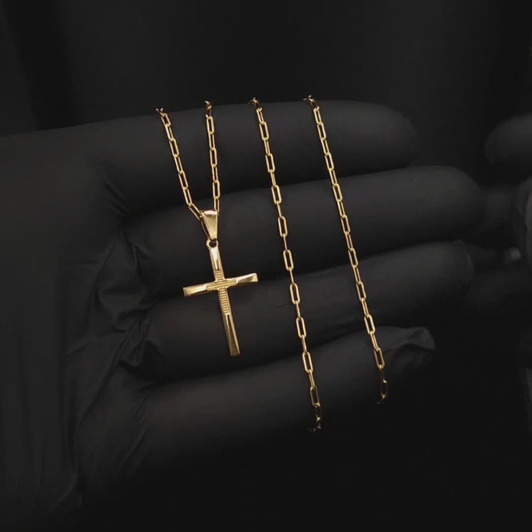 Adicione elegância e sofisticação com a corrente modelo Cartier de 2mm com pingente Cruz Detalhada. Uma jóia de alta qualidade banhada a ouro 18k.