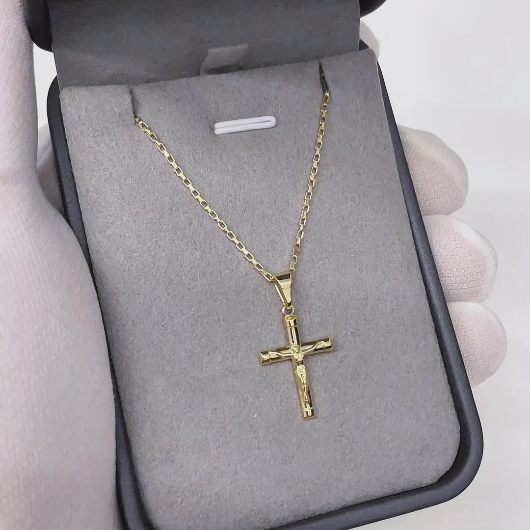 Corrente Tijolinho 1mm com pingente Cruz com Jesus Banhado a Ouro 18k