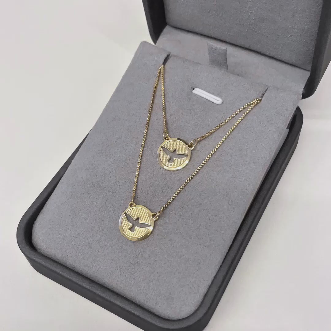 Este escapulário Espírito Santo banhado a ouro 18k combina elegância e significado espiritual. Seu acabamento refinado realça a beleza do design, tornando-o uma peça sofisticada para quem valoriza fé e estilo. Ideal para uso diário ou ocasiões especiais, oferece um toque de proteção e requinte ao seu visual.
