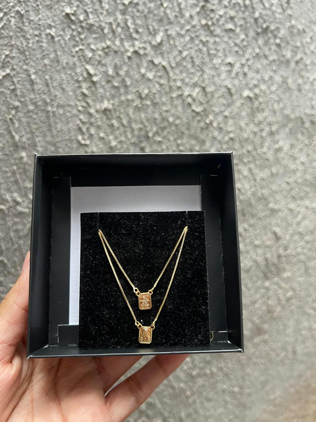 Este escapulário Jesus banhado a ouro 18k combina elegância e significado espiritual. Com acabamento refinado, oferece durabilidade e brilho duradouro, realçando seu estilo com um toque sofisticado. Ideal para quem valoriza acessórios que unem beleza e fé.