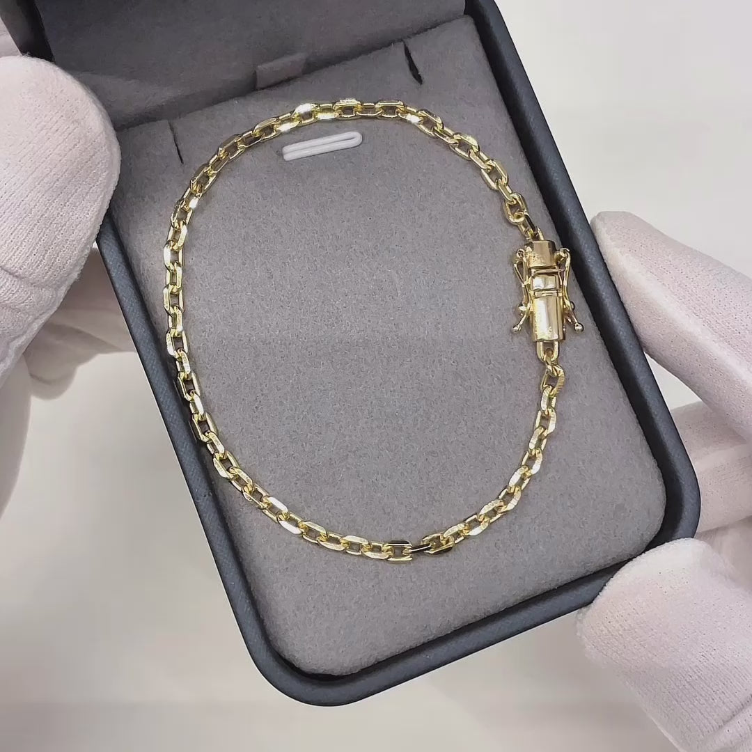 Adicione elegância e sofisticação com a pulseira modelo Cartier Cadeado de 3,5mm, produzida à mão e banhada a Ouro 18k maciço. A pulseira apresenta um fecho Gaveta que é prático e garante mais segurança.